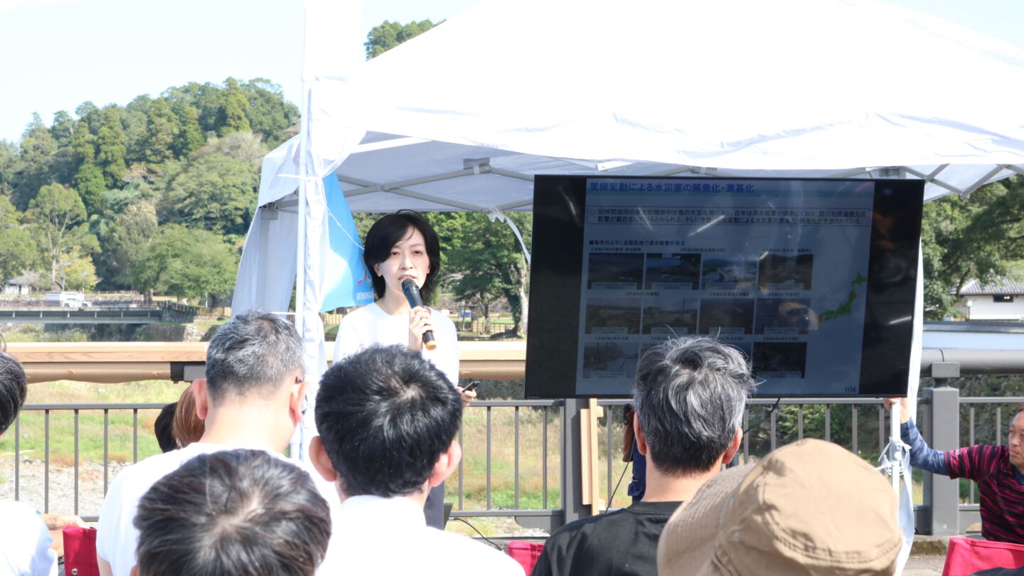 気候変動の影響が顕著な昨今、流域全体の関係者が協力して水災害による被害を最小化し、水の恵みを最大化することを目指す「流域総合水管理」の必要性についてのお話でした。